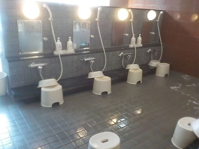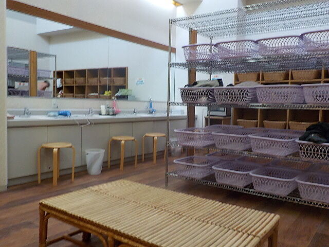 日替わりで「山の湯」(手前)と「木の湯」(奥)が男女入れ替わる。貴重品ロッカー(100円返却式)あり。