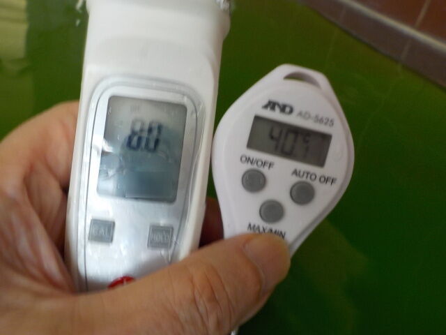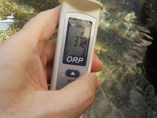 浴槽:温度42.6℃、pH9.1、ORP値は378mvに収束した。