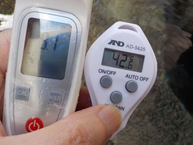 湯口:温度44.1℃、pH9.0、ORP値は384mvに収束した。