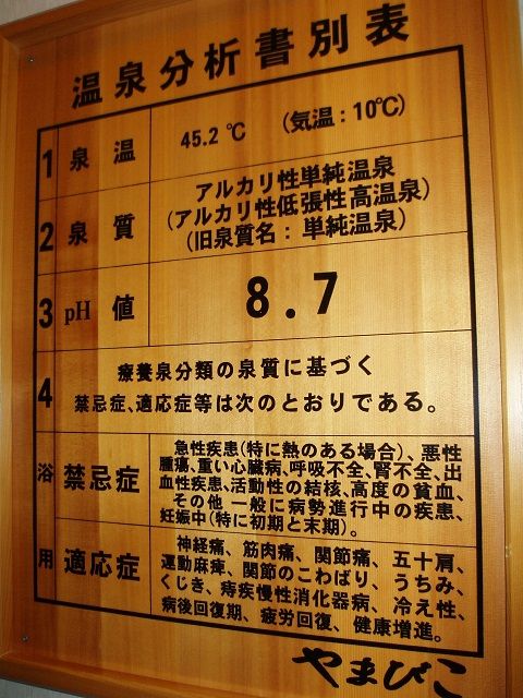 ◇温泉分析書(脱衣所前掲示)