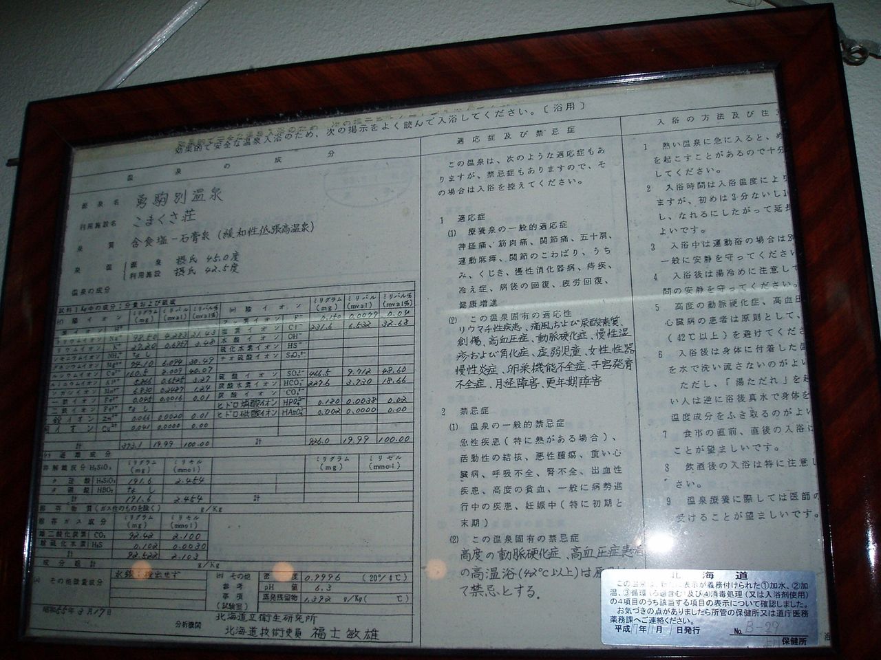 ◇温泉分析書(脱衣所掲示)