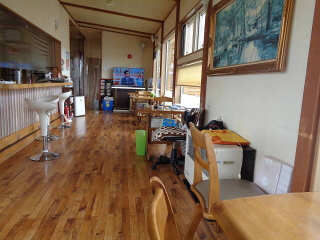 1階のレストラン。スリッパで入館する。
