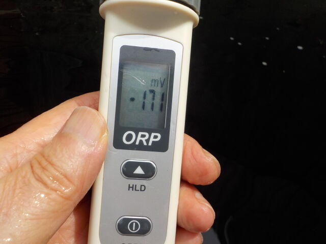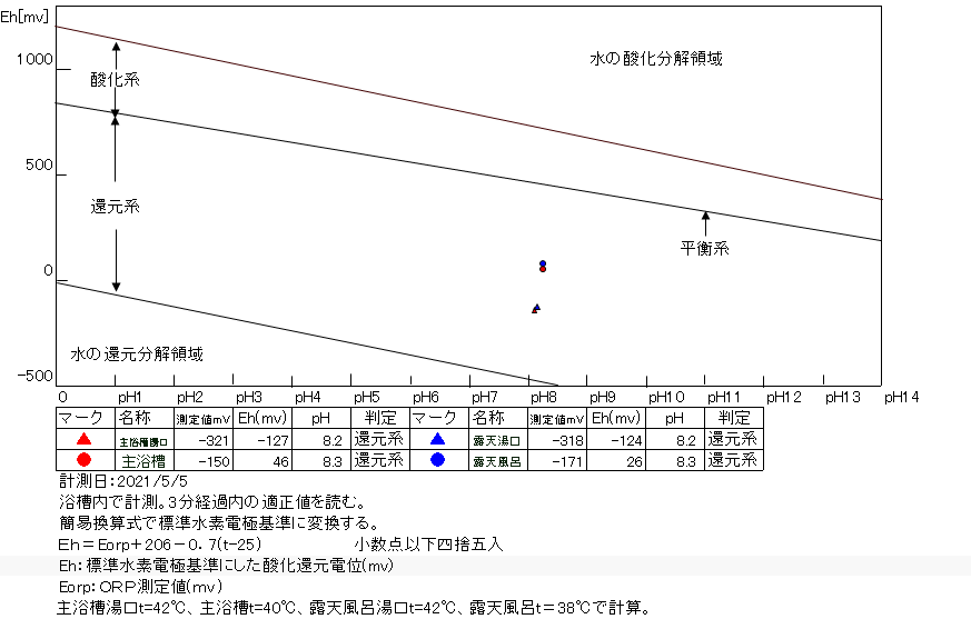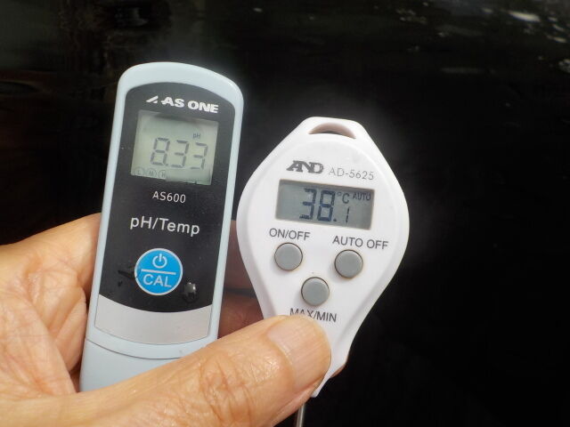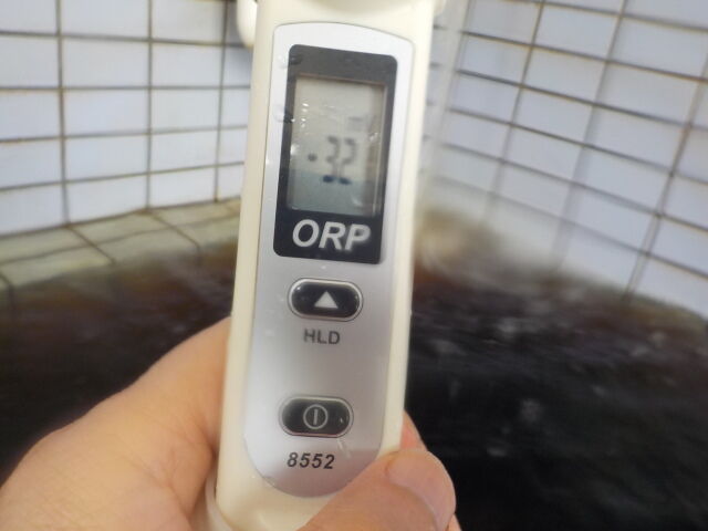 浴槽:温度38.1℃、pH8.33、ORP値は-171mvに収束した。