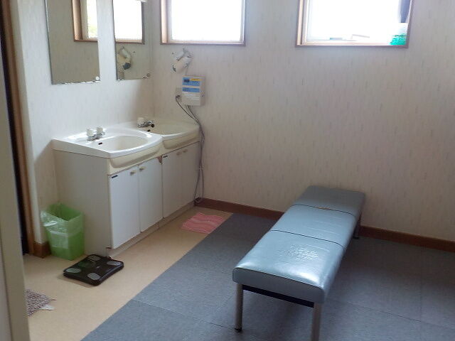 突き当りの脱衣所。貴重品ロッカー(無料)は受付横にある。