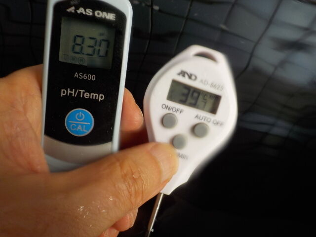 浴槽:温度39.7℃、pH8.30、ORP値は-150mvに収束した。