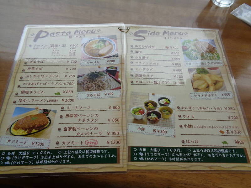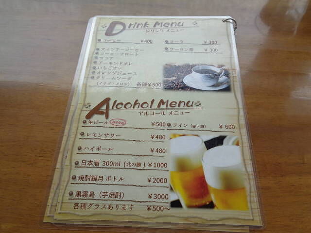 メニュー表。ライスメニュー、セットメニュー、麺類など。