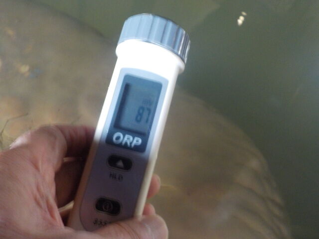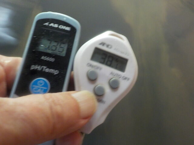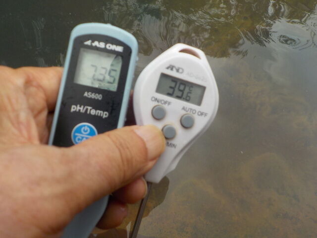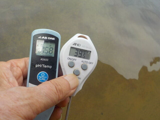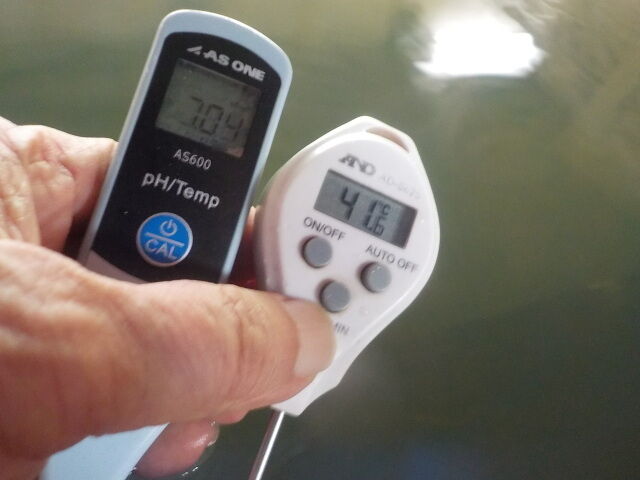 浴槽:温度39.5℃、pH7.68、ORP値は68mvに収束した。