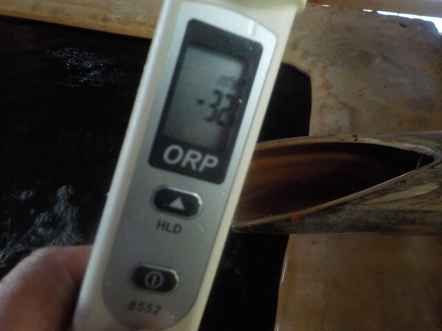 浴槽:温度38.1℃、pH7.35、ORP値は-11mvに収束した。