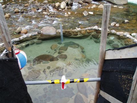 何年か前に訪れたときには川沿いの露天風呂は仕切りで数箇所に分かれていたが、洪水で新たに造りなおしたのか、湯船は1つになっていた。
