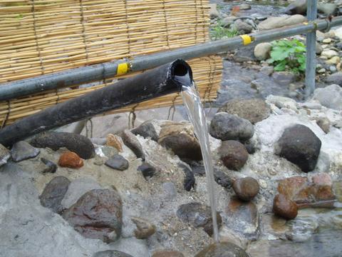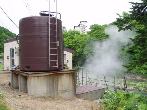 御宿かわせみから少し上流側に源泉管理小屋と源泉タンクがある。