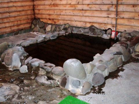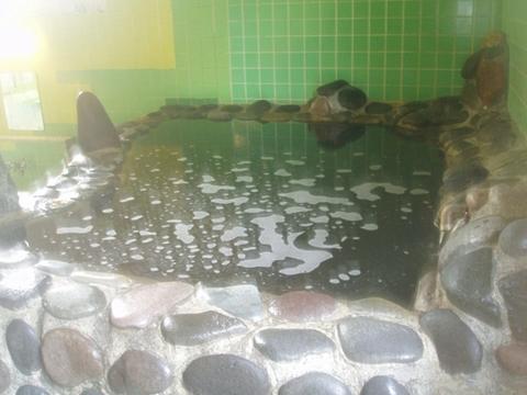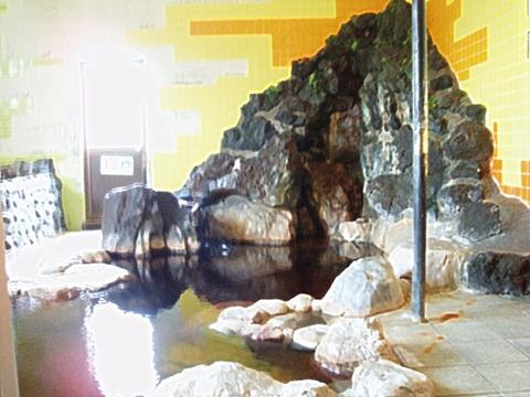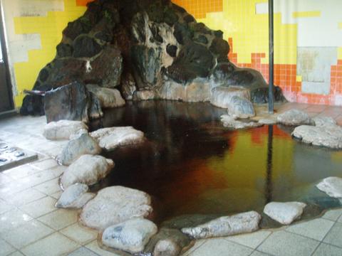 湯気が充満する浴室に岩を配した大浴槽、石で固めた小浴槽を配置。シャワー付カラン7台、カランのみ2台。シャンプー類は置いていない。女湯にはまんじゅうふかしなる装置もある。