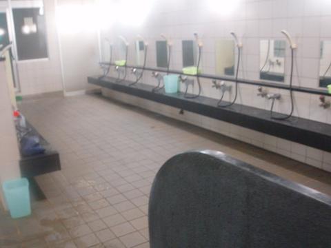 湯船の中ほどで、湯温42.5℃、pH7.9を計測。湯底を念入りに探ると壁面に近い湯底に1ヵ所循環吸い込み口から湯が吸込まれているのを確認。ジェットバスとの仕切りに側溝があるもののオーバーフローしている気配はないようだ。加熱循環方式と査定。真湯と異なり塩素薬剤臭は感知されず。金気成分のキシキシ感が強く印象に残っている。