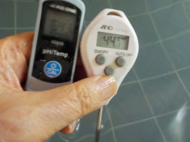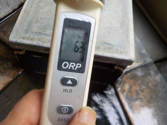 浴槽:温度45.0℃、pH6.48、ORP値は127mvに収束した。