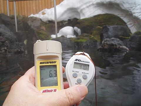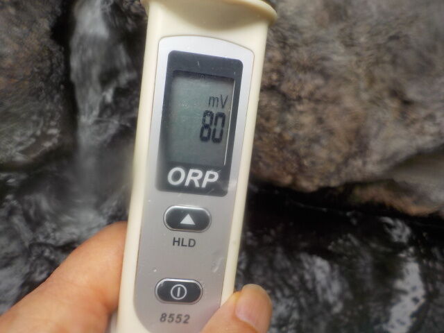 湯口:温度47.1℃、pH6.26、ORP値は80mvに収束した。