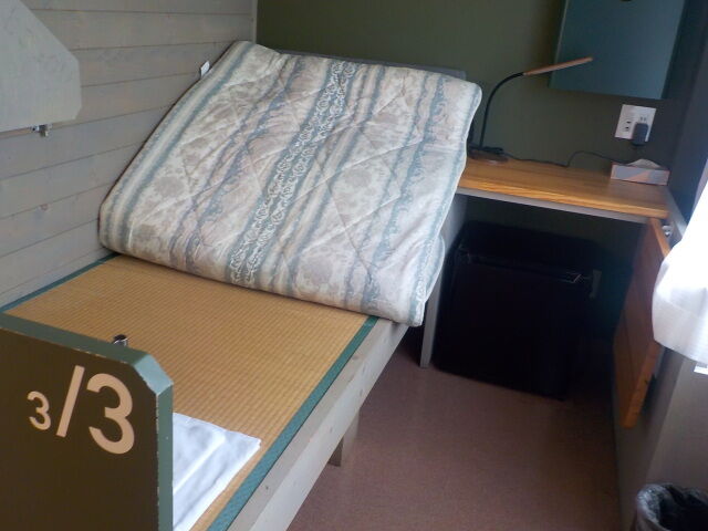 案内されたのは103号室。ベッドは3台。空いてるベッド下に荷物を置く。ドアは鍵なし。
