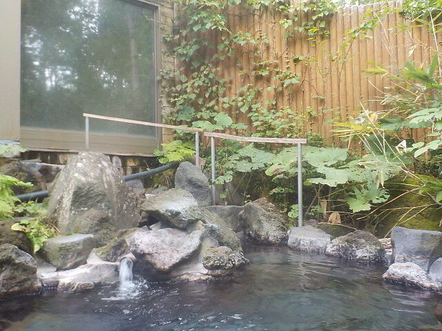 数人用のこじんまりした露天風呂。ほとんど無色透明の湯。注湯量は約30ℓ/分。知覚的には微弱塩味、ほとんど無臭。溢れた湯は排湯口から排湯している。真夏だとかなりの高温湯だが、足が痺れなかったので何とか入浴できたが、全ての湯客が入れるとは限らない。
