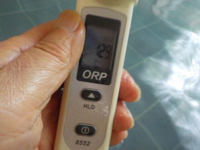 浴槽:温度44.1℃、pH6.43、ORP値は129mvに収束した。