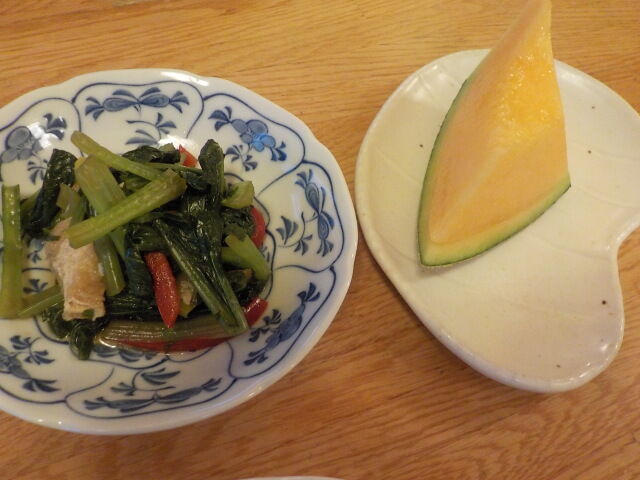 和え物、メロン、茄子の煮浸し