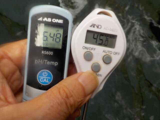 湯口:温度46.9℃、pH6.24、ORP値は63mvに収束した。
