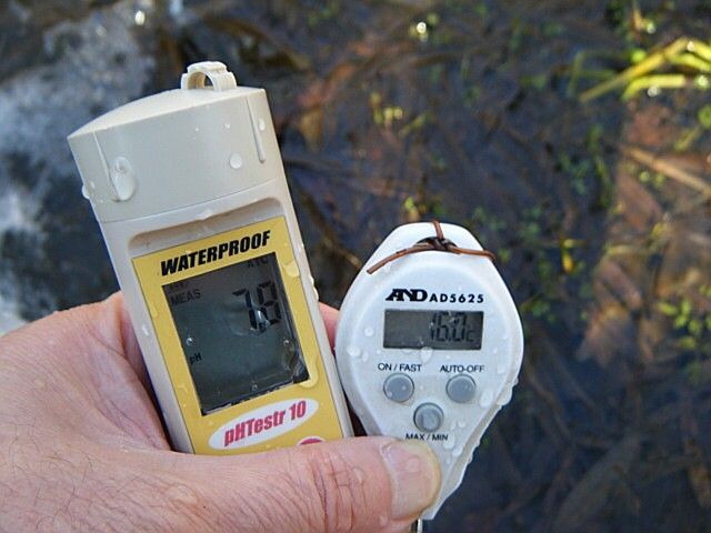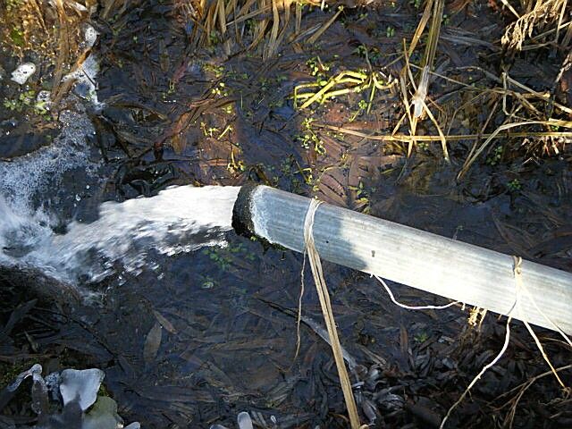 現場に着くと横に長く伸びた配管から排水路に冷泉が迸っていた。ポケナビでは、北緯42度53分55.4秒、東経143度15分04.9秒。