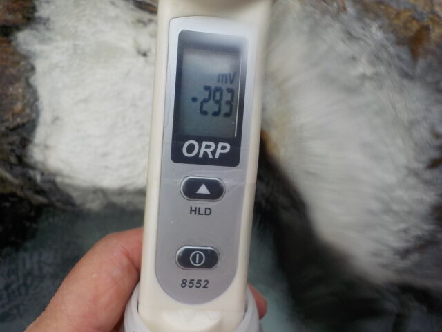 湯口:温度48.1℃、pH6.83、ORP値は-282mに収束した。