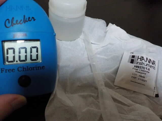 測定値は0.00ppmとなり、遊離残留塩素の未検出を確認した。