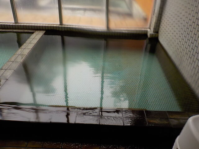 ほとんど無色透明の湯。溢れた湯は湯縁からオーバーフローしている。ややぬるめで快適な湯温である。長湯に向きそうだ。