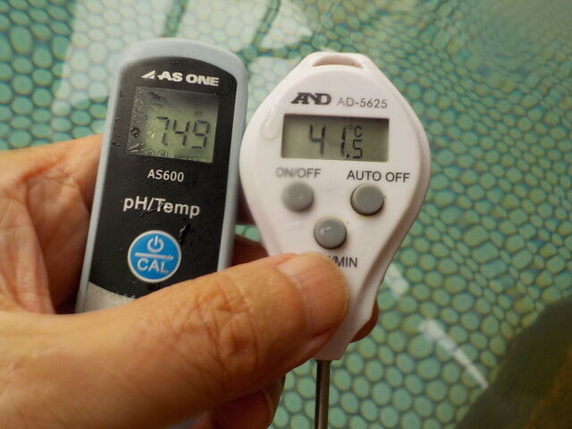 浴槽:温度41.5℃、pH7.49、ORP値は-148mに収束した。