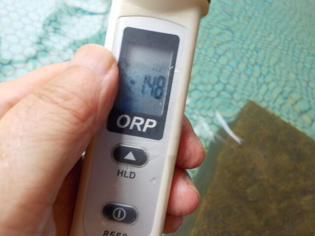 浴槽:温度39.3℃、pH7.65、ORP値は13mに収束した。