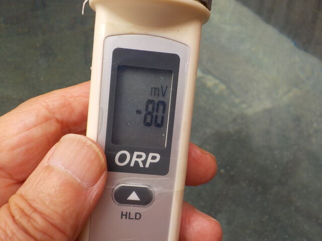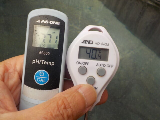 浴槽:温度40.4℃、pH7.71、ORP値は-80mに収束した。