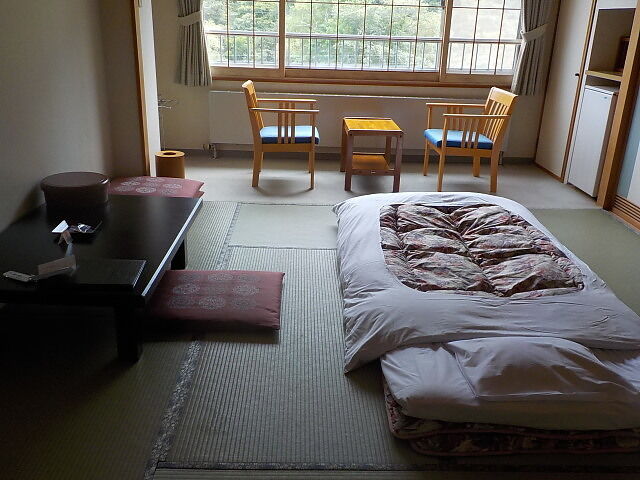 エレベーター有り。案内されたのは本館3階和室禁煙。布団は既に敷いてある。フリーWi-Fi接続可。