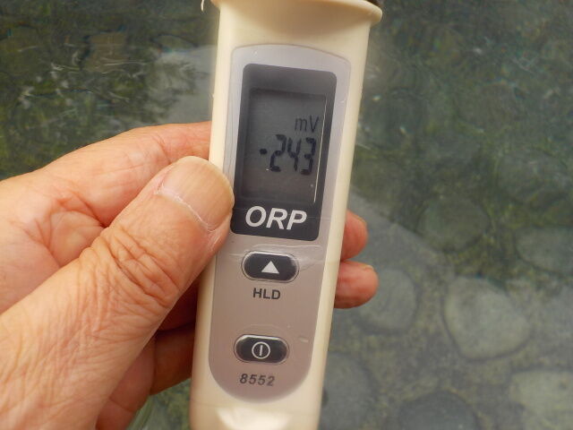 浴槽:温度41.1℃、pH7.33、ORP値は-243mに収束した。