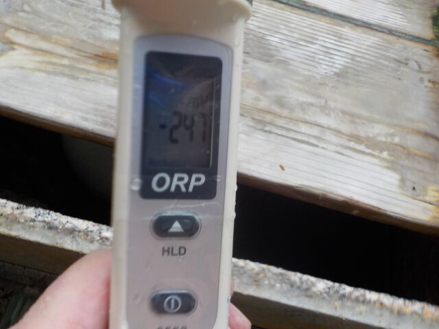 2020/9/14、15時30分~16時、浴槽内でORP計測(湯口はミニボトルで採水)。加水掛け流しで、塩素系薬剤未使用。