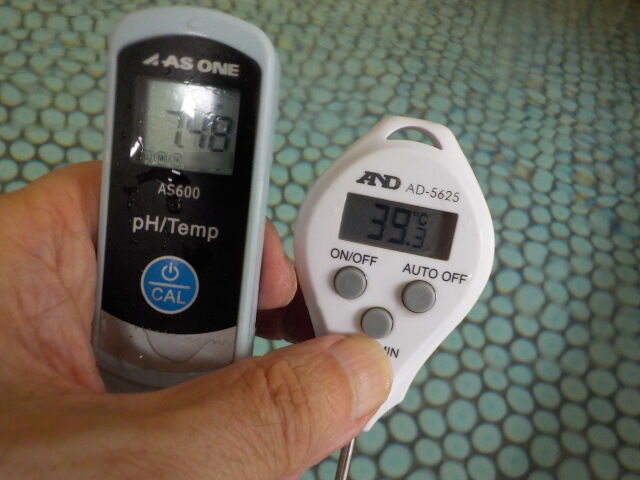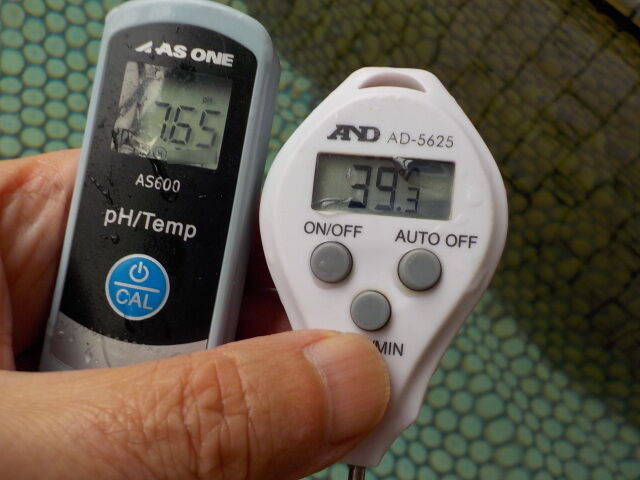 浴槽:温度39.3℃、pH7.48、ORP値は7mに収束した。