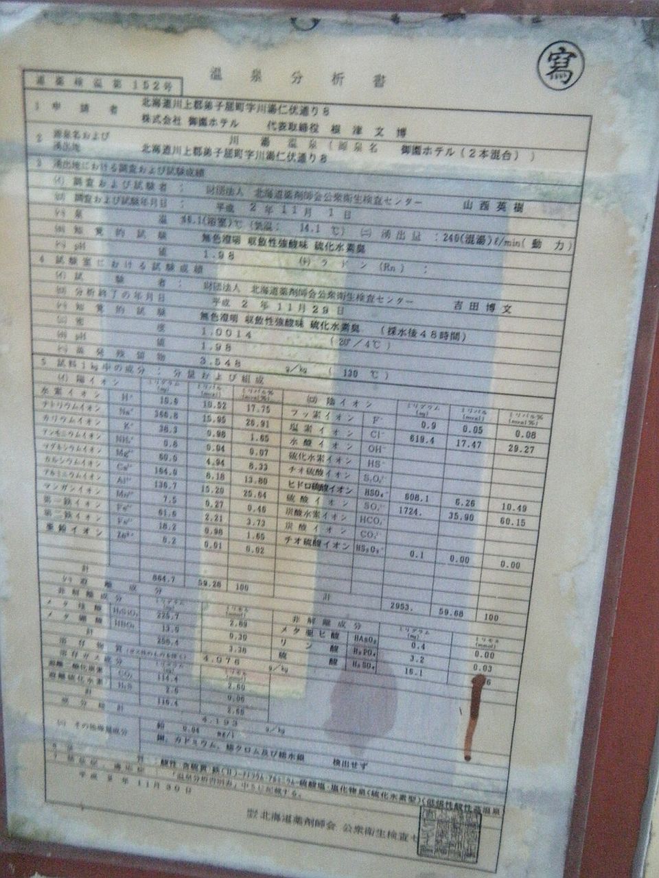 ◇温泉分析書(掲示板に掲示)
