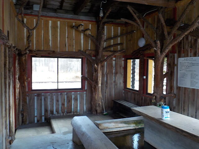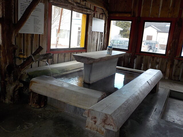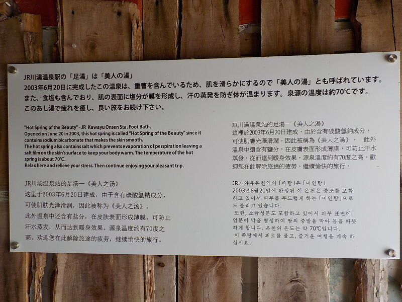 平成15(2003)年、川湯温泉駅舎に作られた足湯。駅前に新トイレが完成した時に旧トイレを改装して足湯ができた。始発から最終の列車の時間内で利用可能。