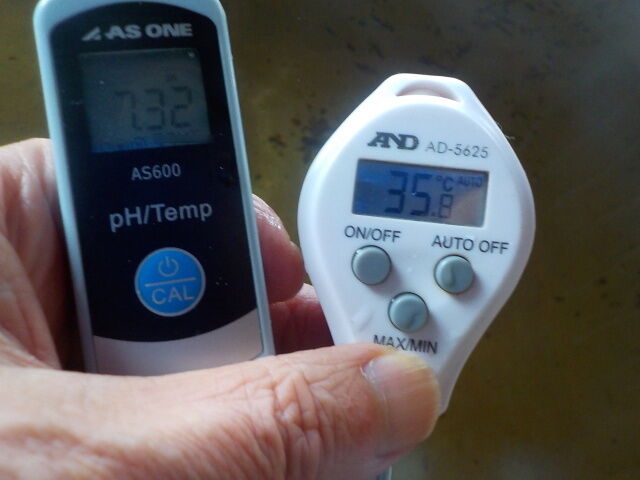 浴槽:温度35.8℃、pH7.32、ORP値は127mvに収束した。