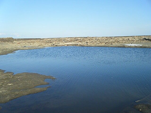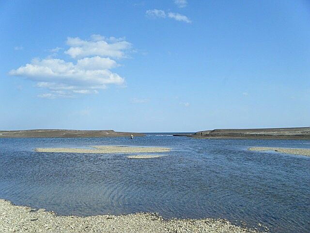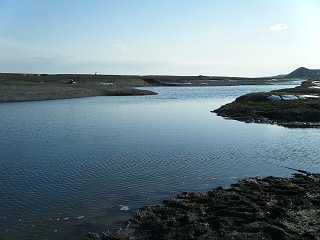 今年初めての釣行は音別川河口。音別橋から数十m上流の好ポイントは数人の先客がいたので諦め、河口に移動する。今年3月時点での河口の開口部は西寄りに移動していた。