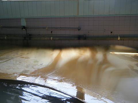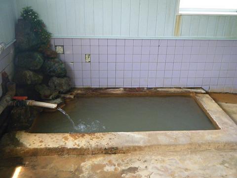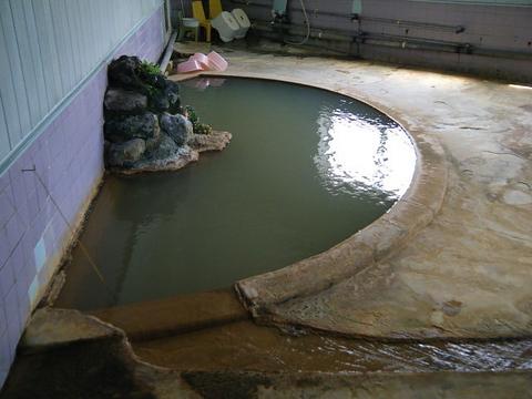 矩形の湯船に緑褐色の湯。茶褐色の湯の華が浮遊している。湯口から、45度、pH6.1の源泉が約20ℓ/分ほど注いでいる。知覚的には、大浴槽に準ずる。