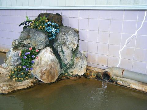 湯船の中ほどで、湯温40度、pH6.7を計測。溢れた湯は湯縁からオーバーフローしている。源泉100%かけ流しと査定。つるすべ感が優勢だが、しばらく経つとつるすべ感ときしきし感が拮抗するような浴感である。