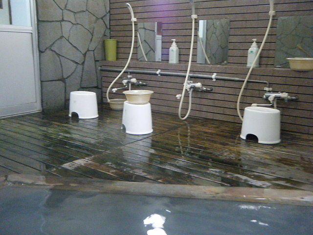 湯船の中ほどで、湯温44.2℃、pH3.2を計測。溢れた湯は湯縁からオーバーフローしている。湯張り時に加水しているが、営業中は加水していない。源泉(加水)かけ流しと追認。外気温が低い冬季には、加温の可能性有り。どろどろした感じはなく、さらりとした浴感だ。
