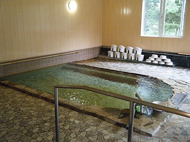 ほとんど無色透明の湯。配管湯口から約45ℓ/分注湯。知覚的には、微弱金気臭、微弱塩味。溢れた湯は湯縁からオーバーフローしている。単純泉だが、炭酸水素ナトリウム型のとろりとした浴感が肌に心地よい。