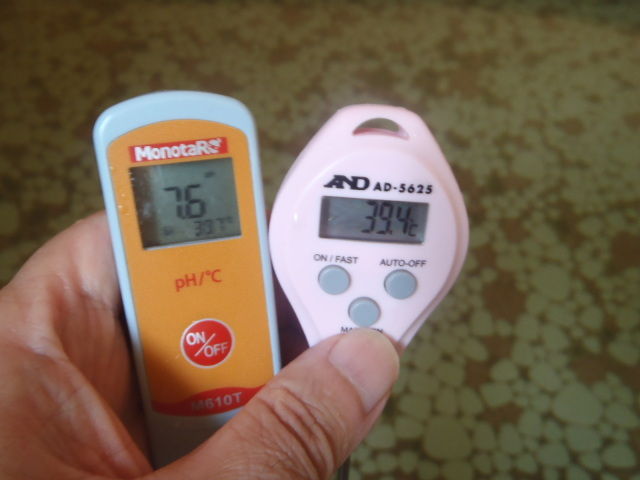 浴槽:39.4℃、pH7.6、ORP値は21mvに収束した。