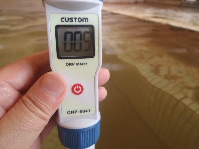浴槽:42.2℃、pH7.6、ORP値は5mvに収束した。