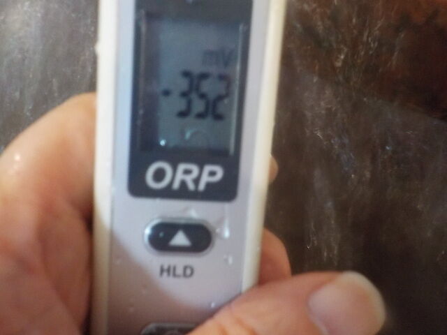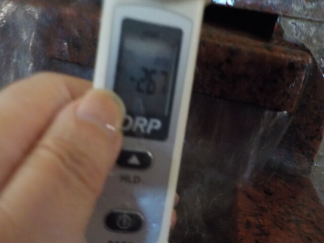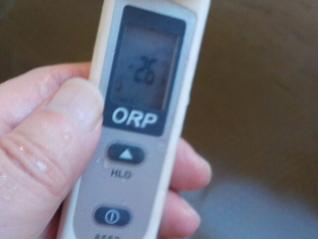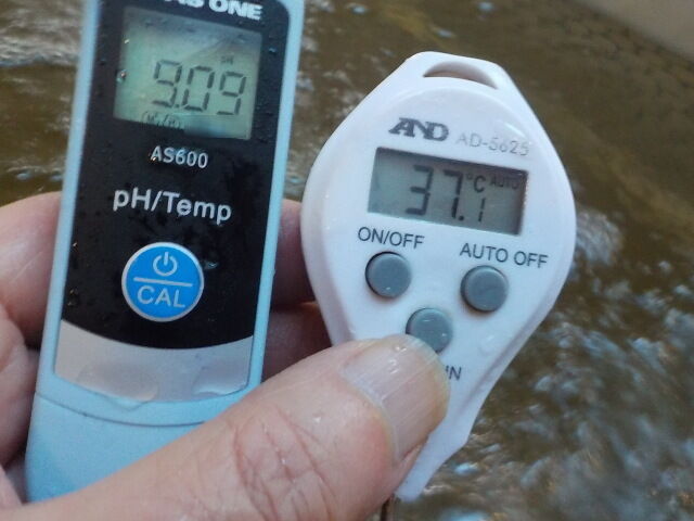 浴槽:温度37.1℃、pH9.09、ORP値は-201mvに収束した。