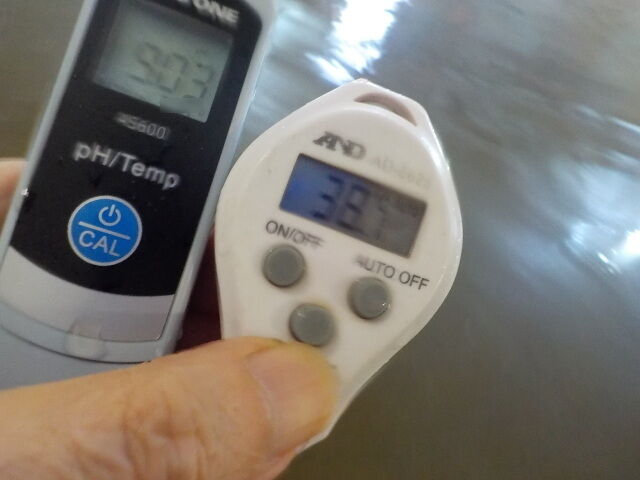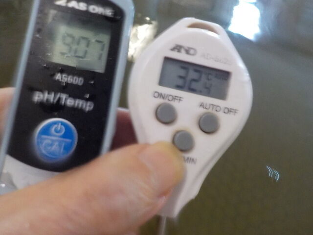 浴槽:温度32.4℃、pH9.07、ORP値は-67mvに収束した。