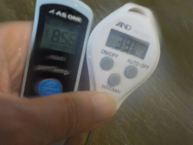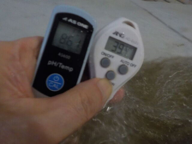浴槽:温度39.7℃、pH8.61、ORP値は-276mvに収束した。