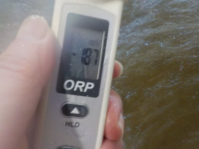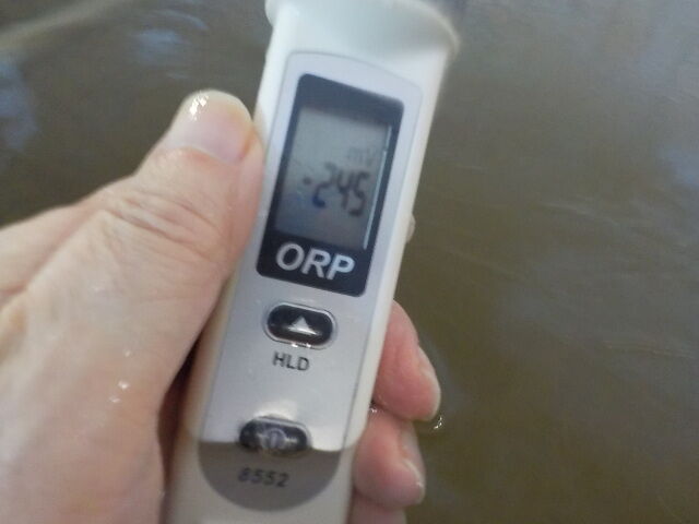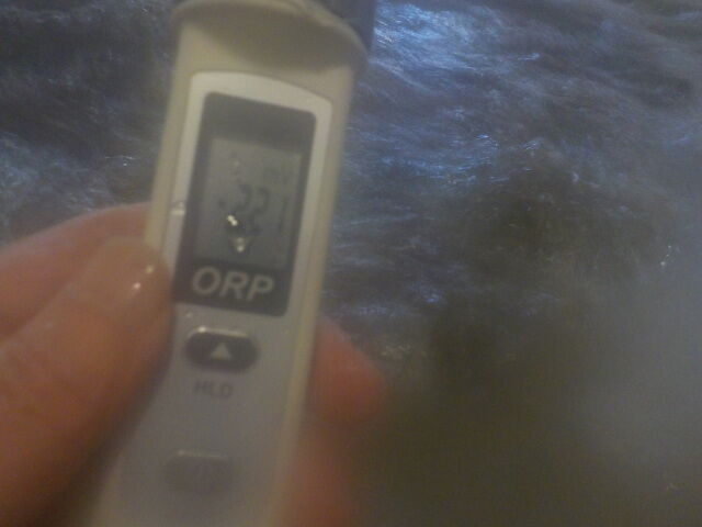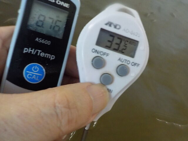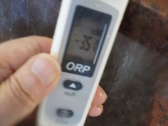 浴槽:温度33.2℃、pH8.76、ORP値は-245mvに収束した。