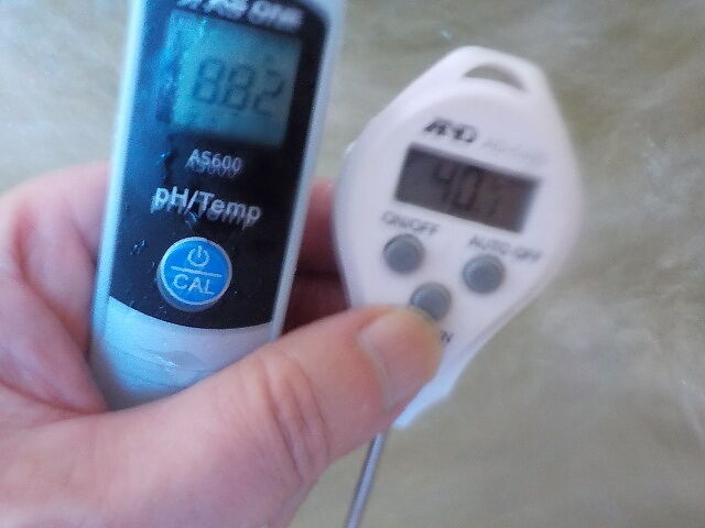 浴槽:温度40.1℃、pH8.82、ORP値は-256mvに収束した。
