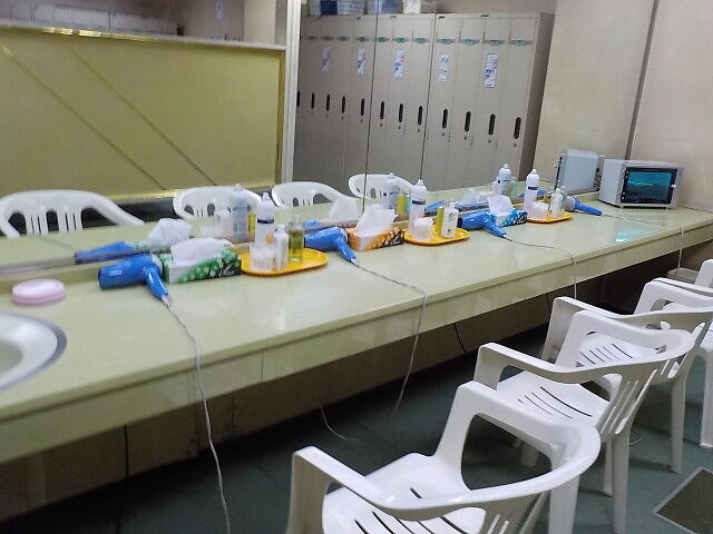 脱衣所のロッカーは鍵なし(受付で借りられるようだ)。監視カメラ設置。宿泊客はチェックイン~21時、翌朝6時頃~8時頃の限定入浴(サウナ、高周波、バイブラ不可。前日の残り湯なので冬季は厳しい)。日中は刺青客が散見される。